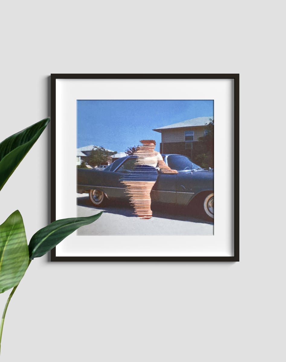 These limited edition archival prints are unique. While the base image remains constant, the hand-stitched detailing ensures that no two pieces in the series are exactly alike.