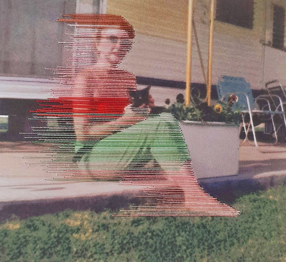 The threads render the image as fuzzy and almost unrecognizable as distant memories.
